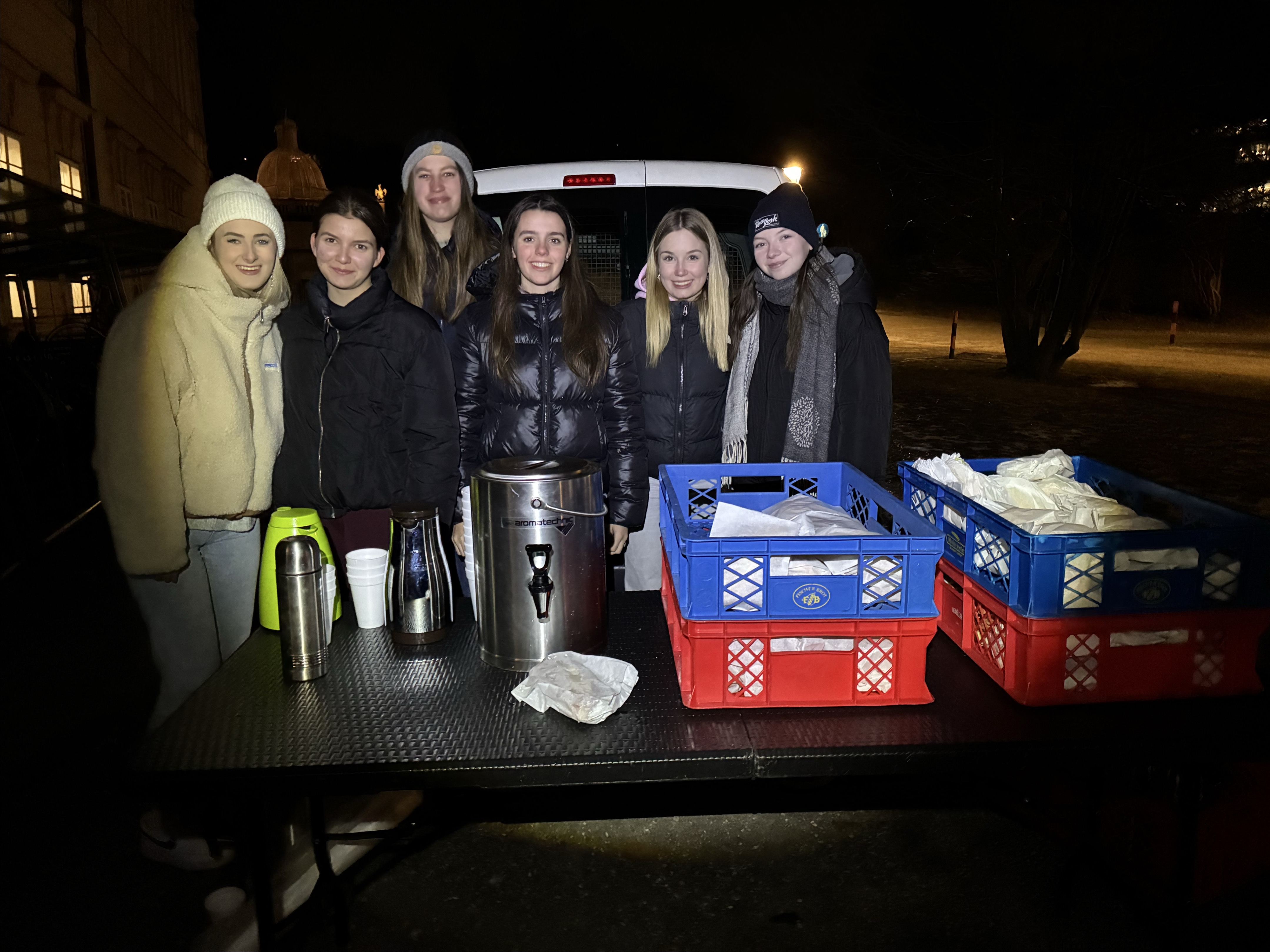 Die Verteilung der Lebensmittel erfolgte gemeinsam mit der Organisation Vinzibus, die sich für obdachlose Menschen einsetzt. Durch diese Zusammenarbeit konnten wir die Weckerl, Muffins und den Tee direkt an obdachlose Personen weitergeben und ihnen damit eine kleine Freude bereiten.